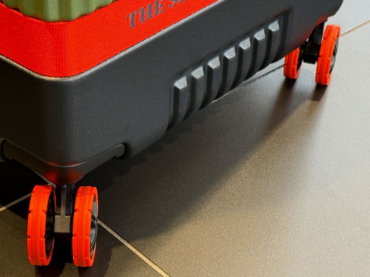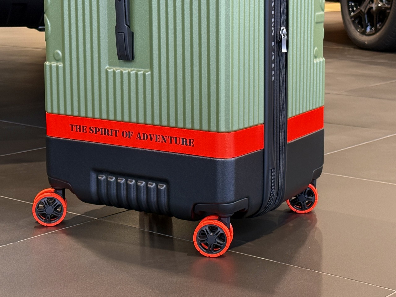ダブルホイールを備えた個性的なスーツケースです。