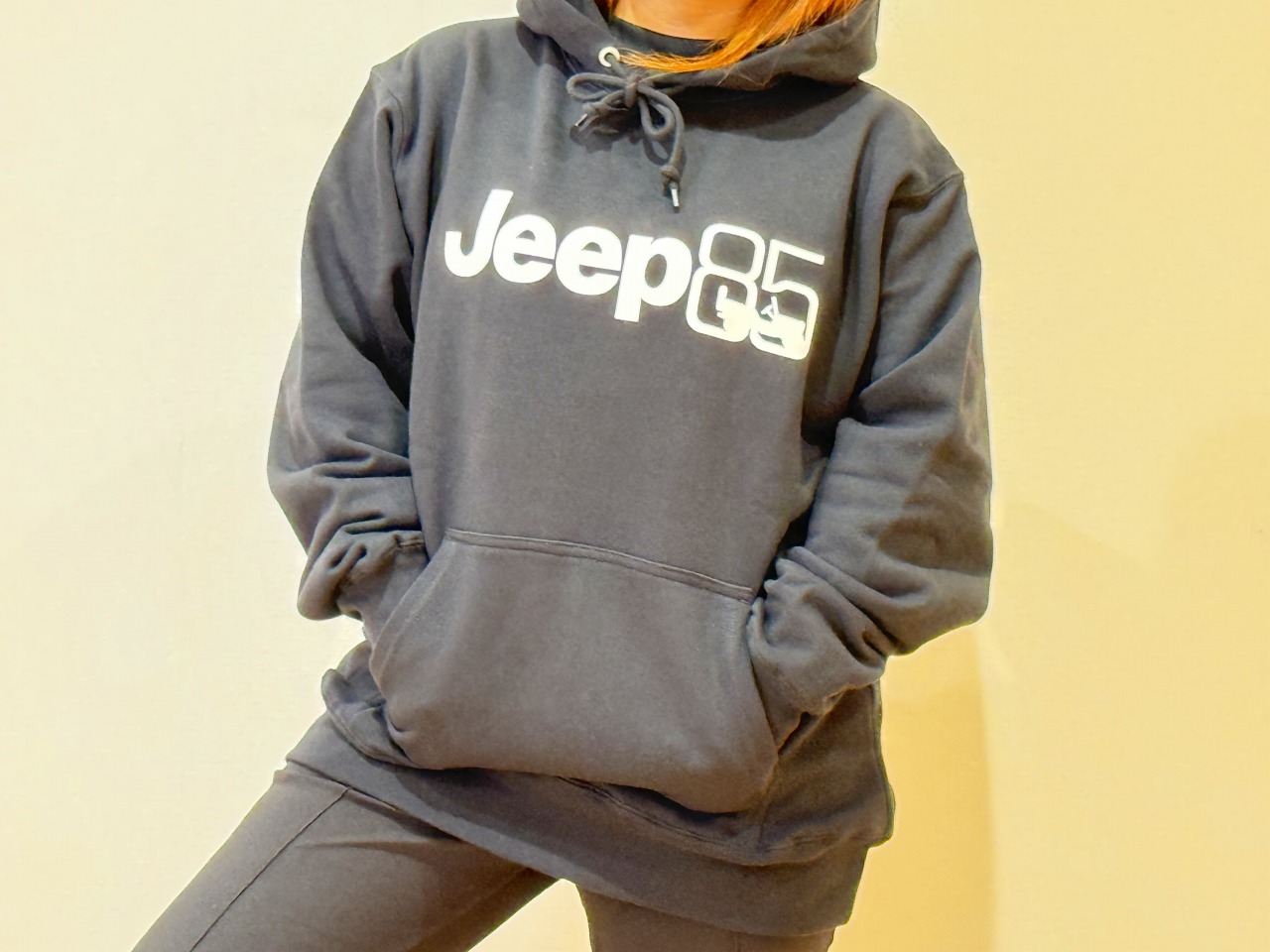 定番プルパーカー。着心地のよいシルエットにJeep85周年ロゴをプリントしました。