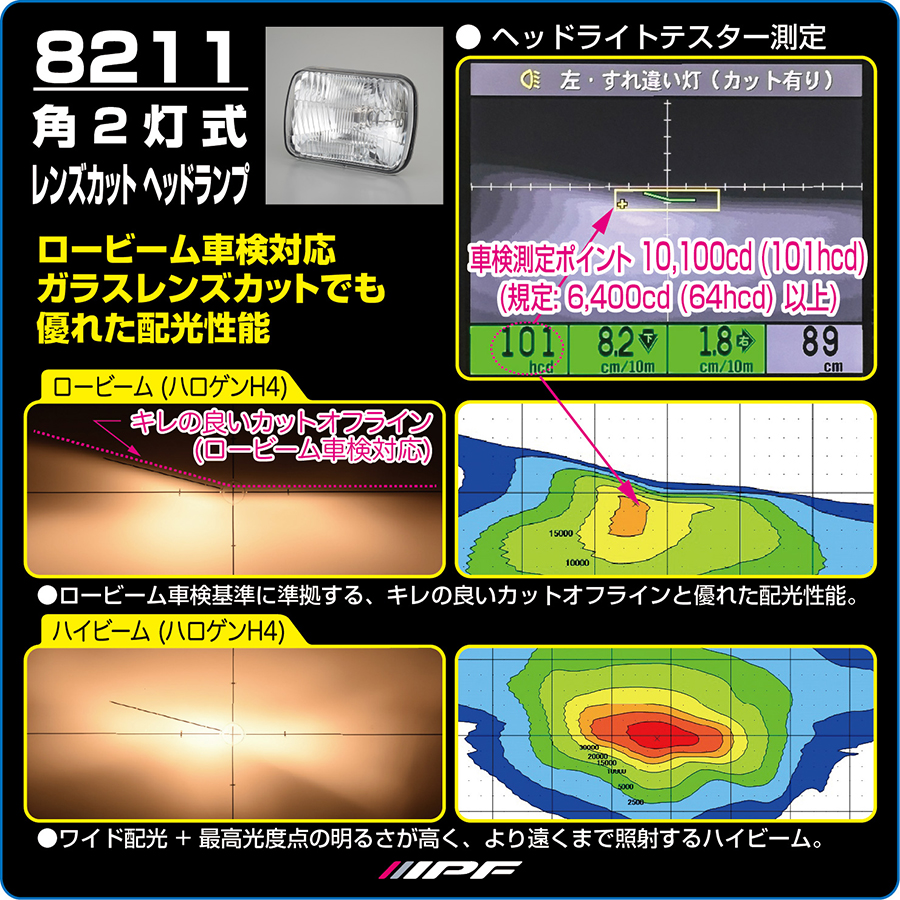 IPF 角2灯式 レンズカット ヘッドランプ -ロービーム車検対応-