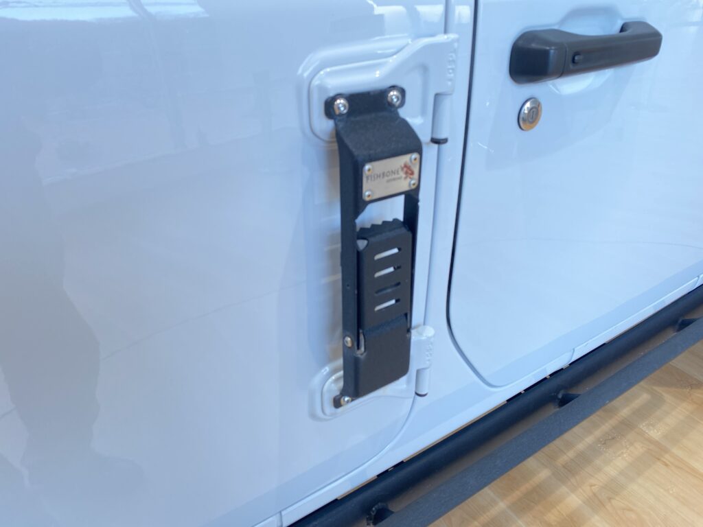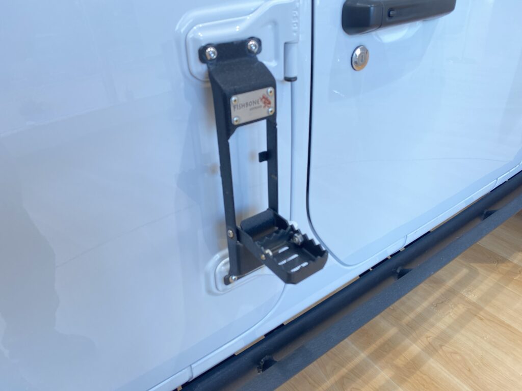 リフトアップした背の高いラングラーなので日々のお手入れやルーフへのアクションにステップを取り付けました。