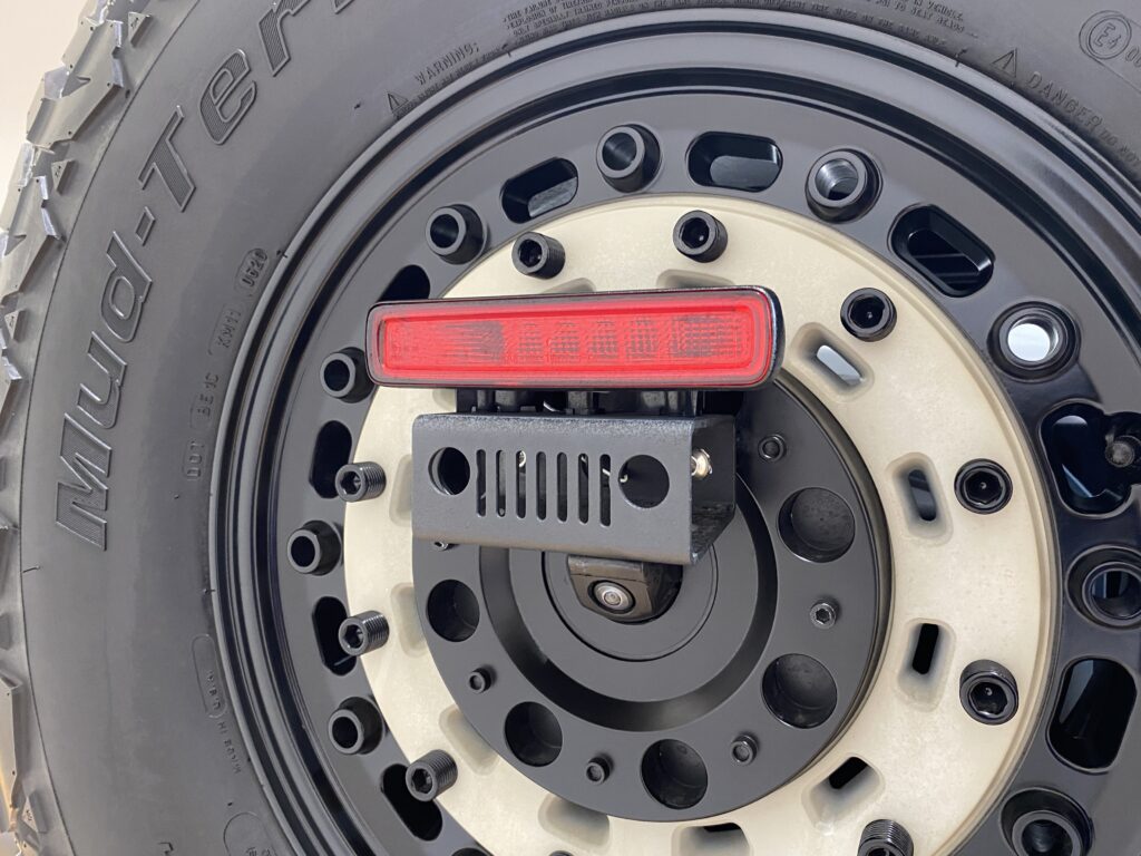 ハイフェンダーに大き目のマッドテレンタイヤの組み合わせでアメリカンな雰囲気が漂う仕上がり!