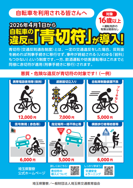 ※令和8年4月1日から自転車の違反に「青切符」が導入されました。今一度自転車の交通ルールのご確認をお願いいたします。