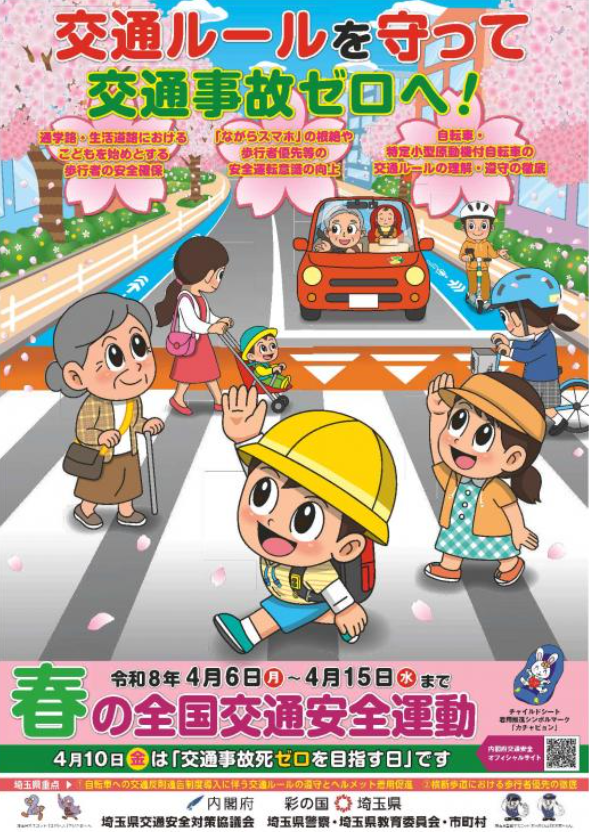 令和8年4月6日(月)~4月15日(水)までの10日間「春の交通安全運動」が実施されます。